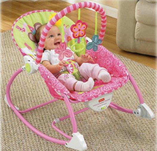 The Infant to Toddler Rocker is in an adorable pink fashion. The same great features that moms and babies have loved for years are in a super cute, pretty pink fashion for your little princess! It grows with baby through the newborn/infant phase as both a rocker and a feeding seat with vibration and stimulating toys, then it becomes a toddler rocker for kids up to 40 pounds. A wonderful seat pad cradles babies in soft fabrics, then with a clip converts to the more upright seat for toddlers. The toy bar includes spinning fun in 3 different ways for lots of bat-at play and motion to watch. Toy bar is removable.